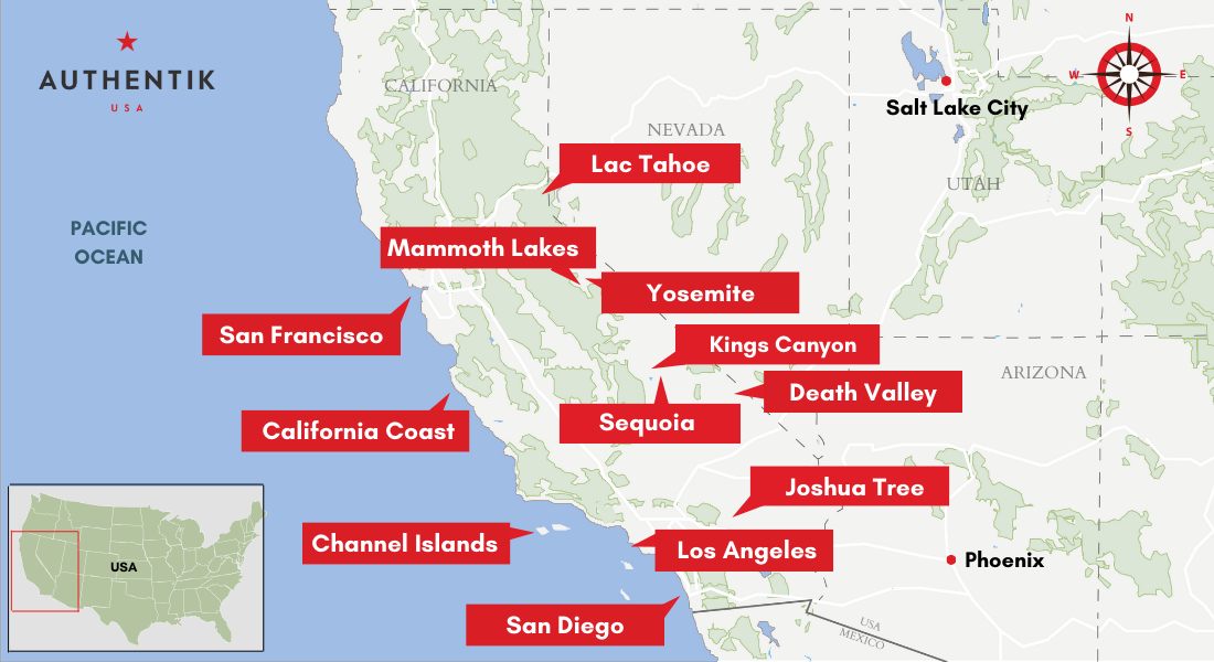 - Map of places to discover on your California trip