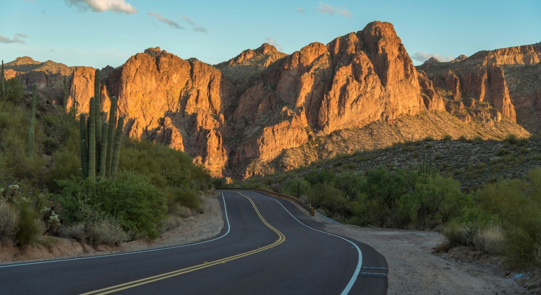 La majeure partie de la route est suffisamment large pour permettre le passage de deux voitures. Le seul endroit étroit se trouve dans la seconde moitié de Hohokam Road, d'où la nécessité d'un sens unique à cet endroit. Procédez avec prudence si vous êtes à bord de votre voiture de location aux États-Unis.